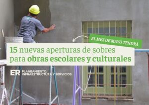 De acuerdo a la planificación de obras que lleva adelante el ministerio, durante el mes de mayo se realizará la apertura de 15 sobres bajo la modalidad de cotejo de precios, un procedimiento ágil que permite avanzar con soluciones concretas y rápidas en establecimientos que presentan situaciones edilicias críticas. Las intervenciones se ejecutarán en los departamentos Nogoyá, Villaguay, Feliciano, Federación, Uruguay, Colón, Concordia, La Paz, Islas, Gualeguaychú y Paraná.